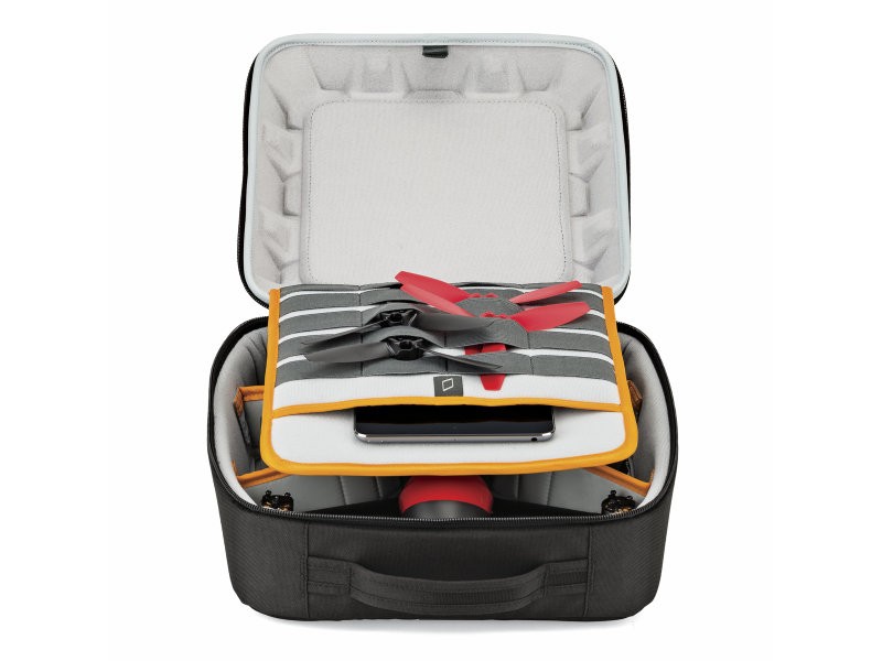 - Patent-pending DroneGuard system of organization features flexible dividers and compartments for all large and small accessories.