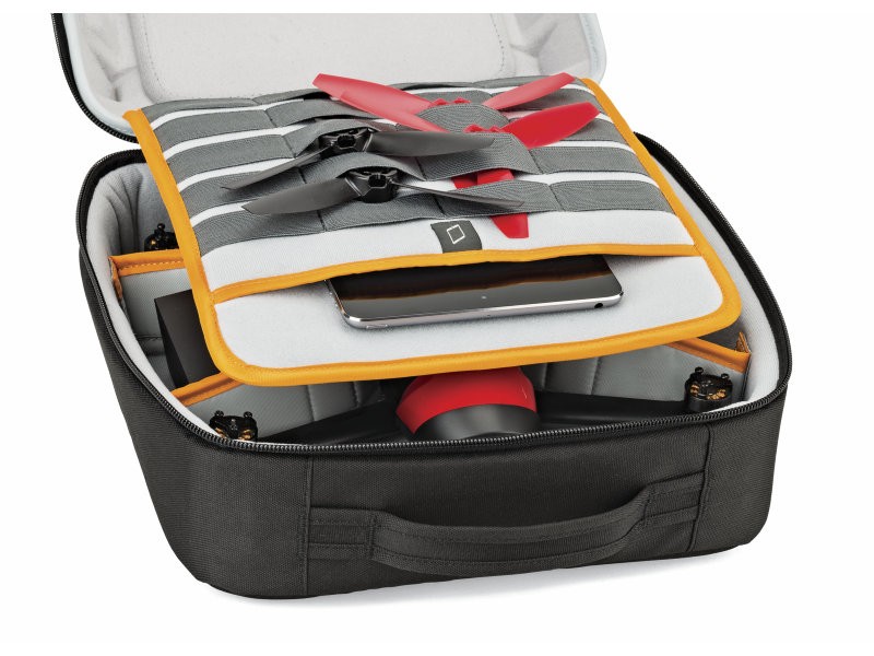 Get flexible organization for your quadcopter and drone gear -- including all accessories. The DroneGuard CS 200 was designed by drone pilots for the depth and form factor of the Parrot Bebop 2 or Yuneeq Breez and has room for a small tablet such as iPad mini. The CS 200 also fits FPV 250 racing drones and similar sized quadcopters and flying cameras.