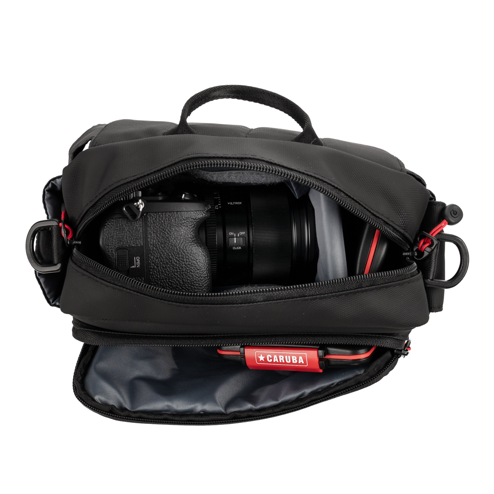 The Caruba Compex Switch 100 is a compact camera bag. The bag has a handy detachable shoulder strap and can also be worn as a waist bag. It is perfect for safely storing and transporting your camera and accessories.
