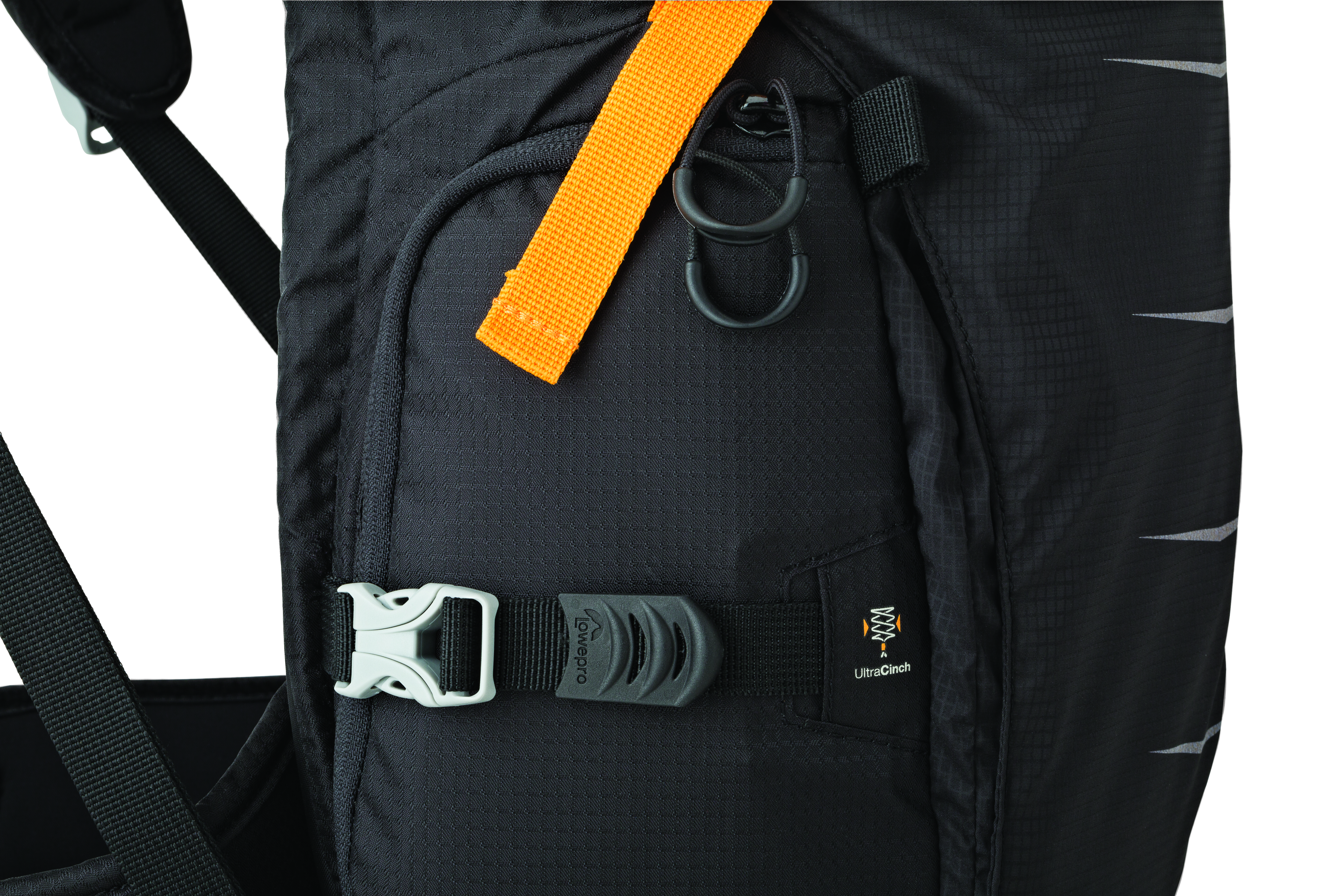 - Keep your camera gear secure and in place while you hike, bike, climb, snowboard or run. Our new UltraCinch design features a custom pull-tab to cinch and tighten photo gear space in one swift action for bounce-free protection.