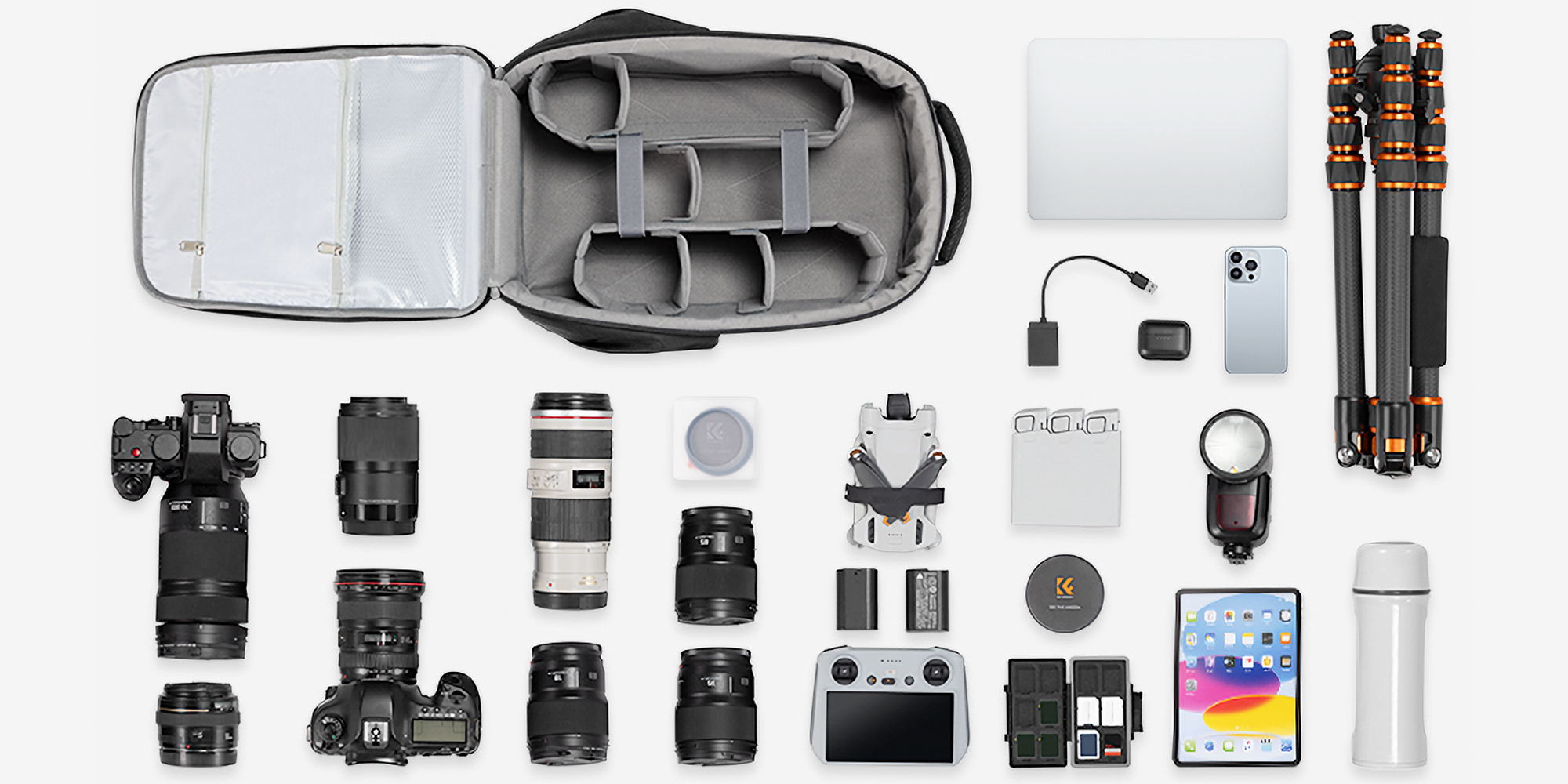 successfully accommodates a camera, up to 4 lenses, a drone and a laptop up to 15.6″