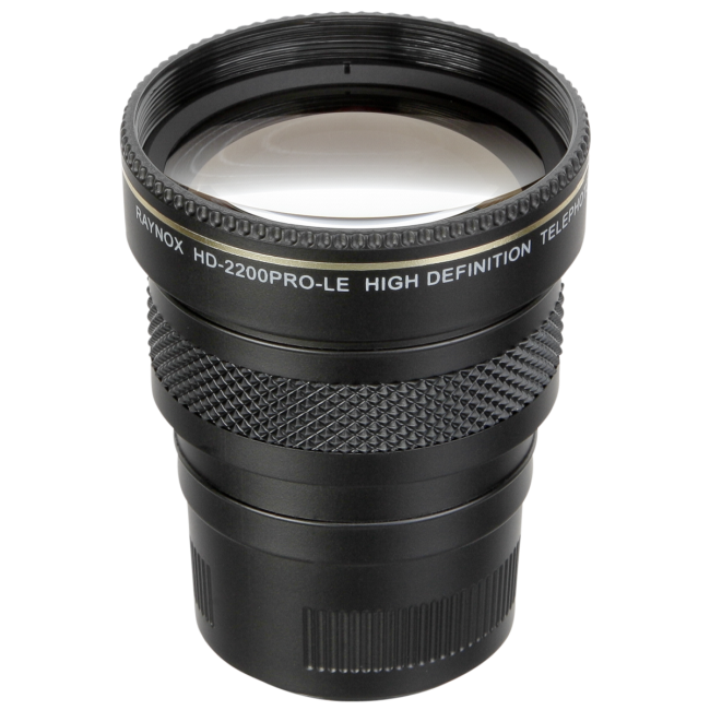 The Raynox HD-2200PRO-LE High-Definition Super Telephoto Conversion lens is made of high index coated optical glass elements with a unique lens design that uses a two-group/four-element lens formula. This lens design made it possible to achieve an amazing high definition Telephoto lens with a resolving power of 200 lines/mm at the lens center. The HD-2200PRO-LE is an ideal accssory for high definition video camcorders.