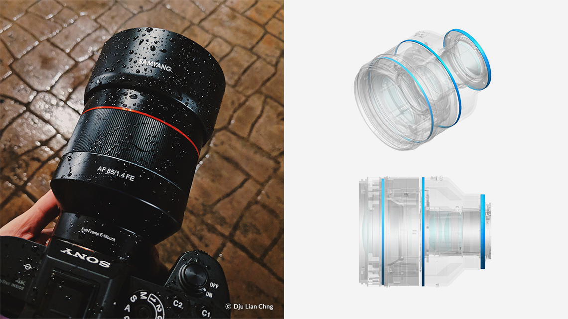 The Samyang AF 85 mm f/1,4 FE is designed to provide an outstanding optical performance, with a combination of high sharpness and exquisite bokeh. On the inside, the optical construction consists of 11 elements arranged in 8 groups where one element is made of ED glass to counteract chromatic aberration, color bleeding. To provide maximum resolution, Samyang has also used four elements made of HR glass (High Refractive). They also contribute to the lens’ relatively compact size (less than 10 centimeters in length). A nine-blade aperture helps to create a soft, blurry background.