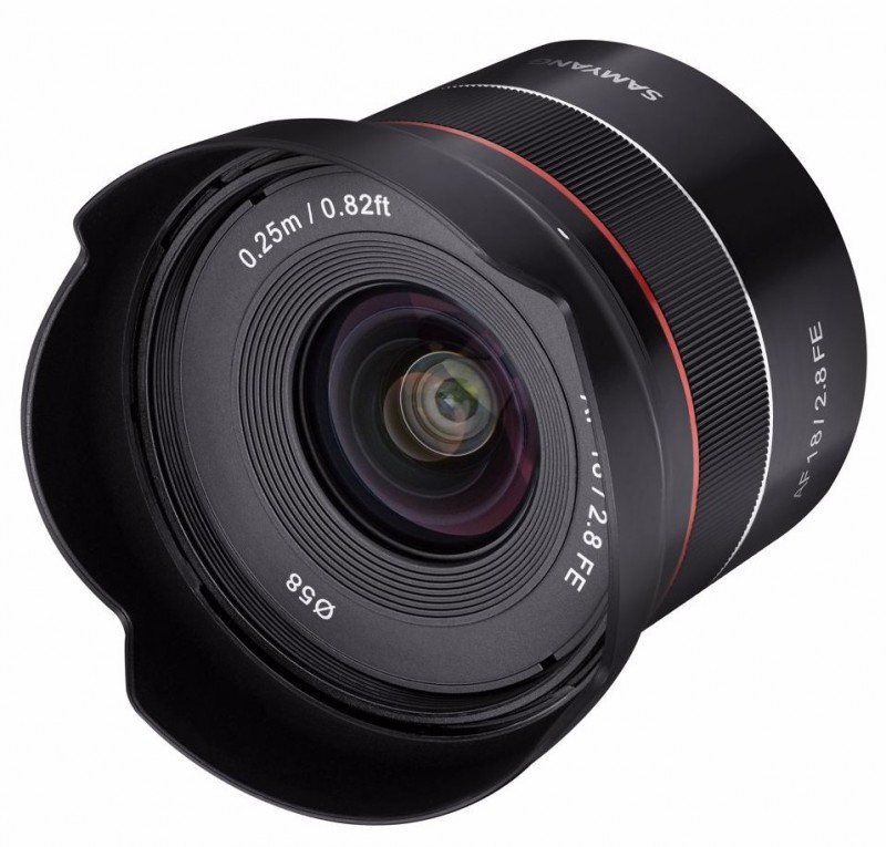 The Samyang AF 18mm f/2.8 FE is a very compact and lightweight ultra wide-angle lens for Sony E / FE mount. With a 100-degree diagonal angle of view (on a full-frame camera), it is ideal for photographing sweeping views, dramatic coastal landscapes, architecture, cities with bustling squares and narrow alleys – or why not cool close-ups of action scenes and sports. The lens can focus as close as 25 cm!