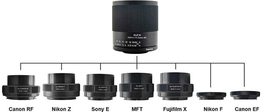 The SZX 400mm f/8 Reflex MF Lens from Tokina is a 400mm catadioptric optical design super telephoto lens with a fixed f/8 aperture, which offers a compact alternative to standard telephoto lenses. It's lightweight and compact design fits easily inside a pocket or small bag and is suitable for travel, wildlife, and outdoor photography.