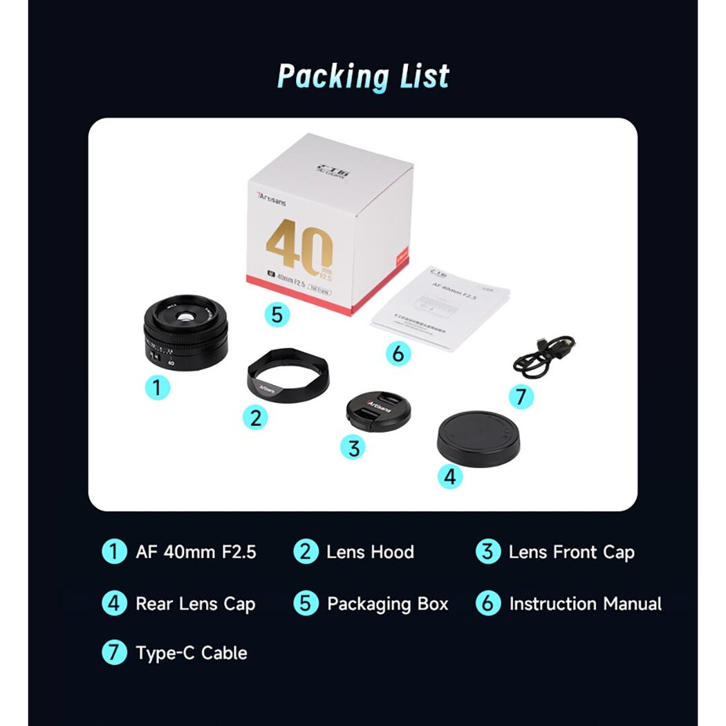 Product description for 7Artisans AF 40mm f/2.5 Sony FE-Mount