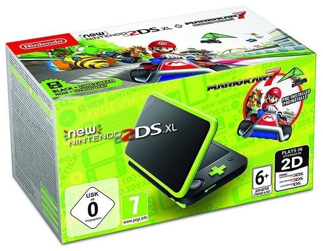 Nintendo 2DS XL black Lime green incl. Mario Kart 7