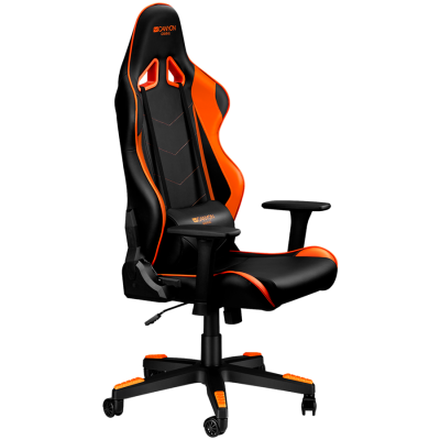 Gaming chair, PU leather, Original foam and Cold molded foam, Metal Frame, Butterfly mechanism, 90-165 dgree, 3D armrest, Class 4 gas lift, Nylon 5 Stars Base, 60mm PU caster, black+Orange.