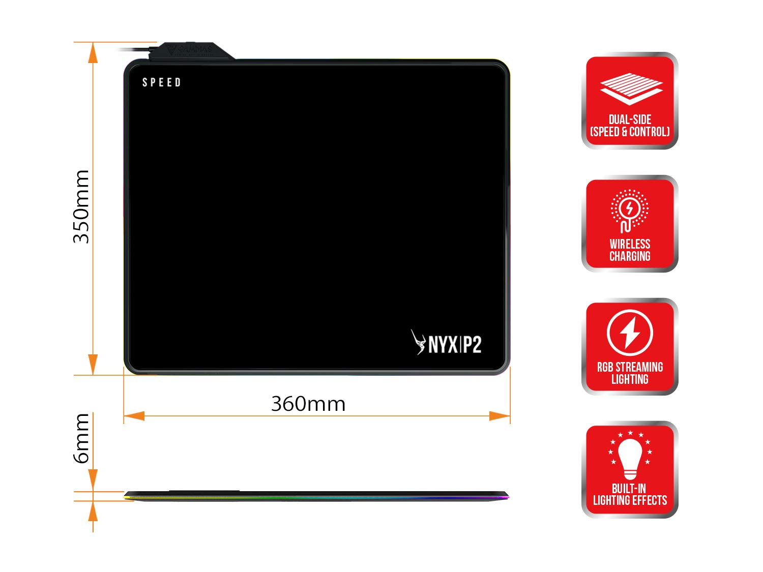 Gamdias Mouse Mats NYX P2 Gamdias With wireless chargin function and RGB lighting
