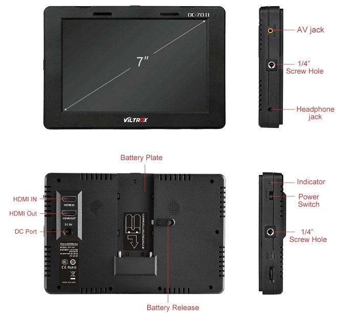 Viltrox DC-70II Clip-on LCD Monitor adopts with 7-inch TFT high resolution LCD panel, is loaded with pro-style