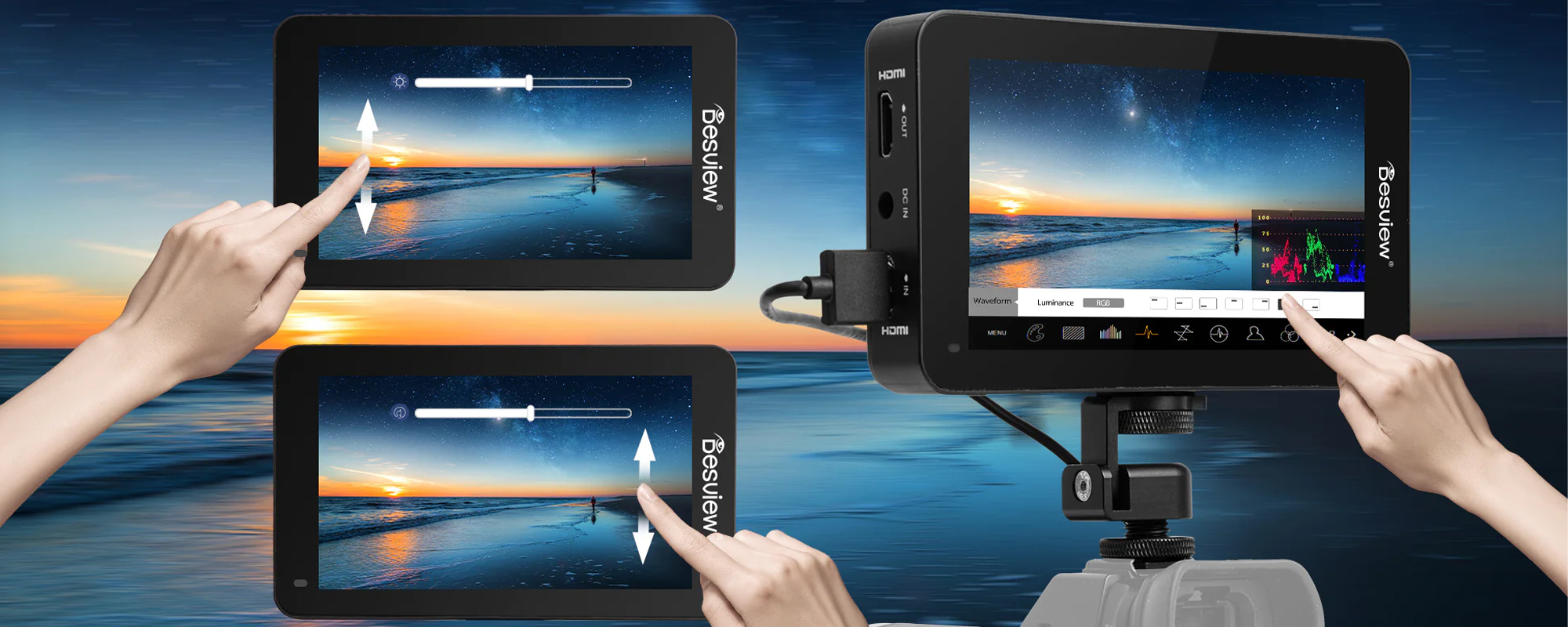 The Desview R6UHB preview monitor offers a number of tools to help you better evaluate exposure levels while working with your camera or camcorder. Using the “Zebra”, “False Color” and “Single Color” modes, you can easily determine which elements of the frame are too bright and which are too dark. These tools will come in handy wherever poor lighting conditions prevent you from accurately assessing the exposure of, among other things, the skin or faces of the filmed characters.