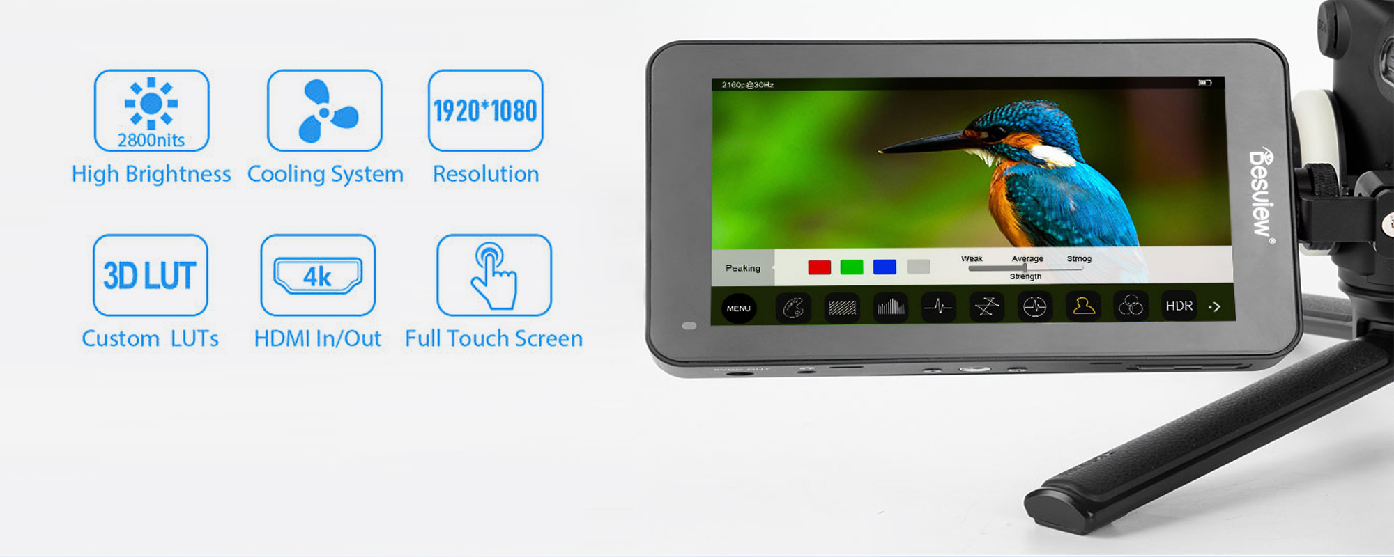The Desview R6UHB preview monitor is equipped with a 5.5″ touch screen. The device is distinguished by above-average brightness, which is as high as 2800 nits. Thanks to such parameters, the image will be legible and clear even when you work in bright sunlight. The device also features an optical sensor that can automatically adjust the brightness of the image to the conditions in which you will be filming.