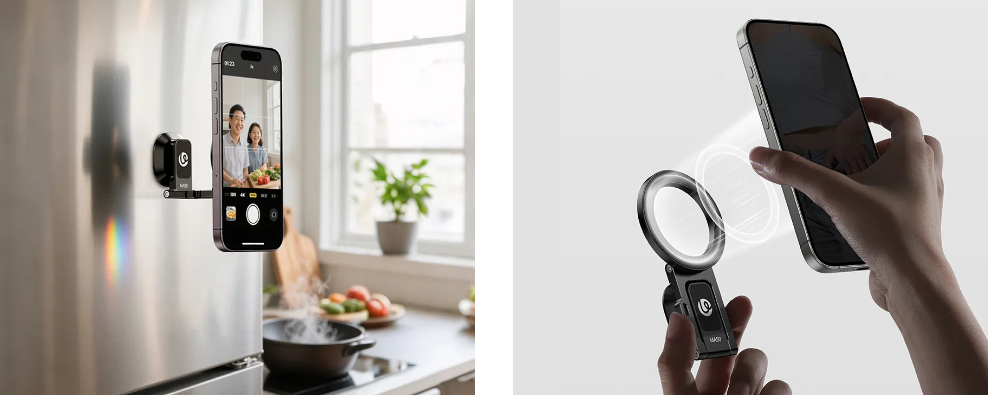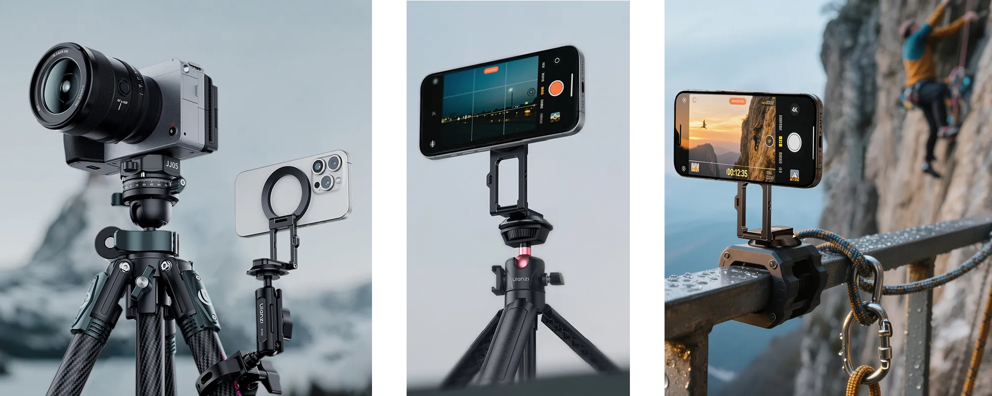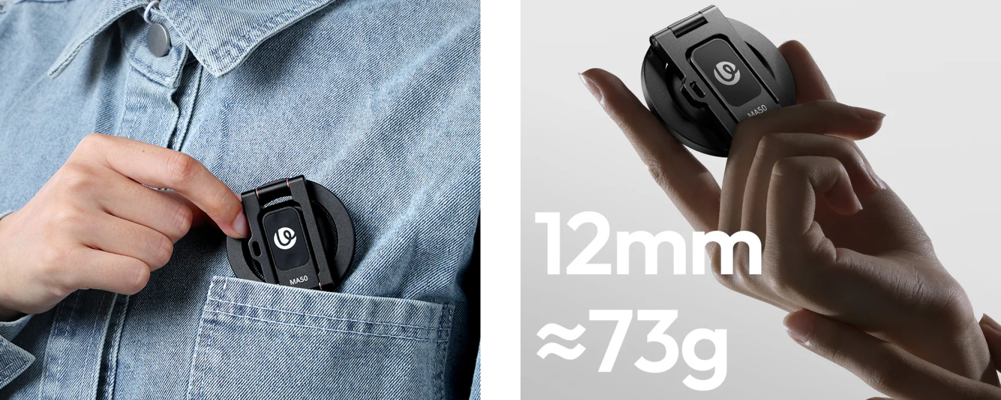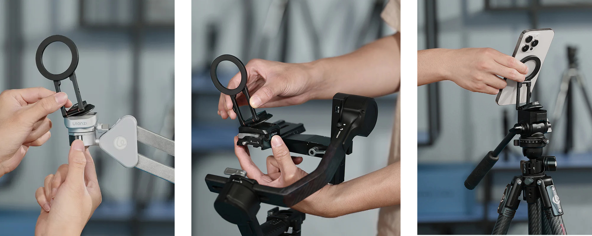 The Ulanzi MA50 magnetic smartphone holder is equipped with two joints that allow for smooth and precise positioning of the phone at almost any angle. Combined with a magnetic ring, the mount is ideal for both horizontal and vertical recording, depending on your needs and creative vision.
