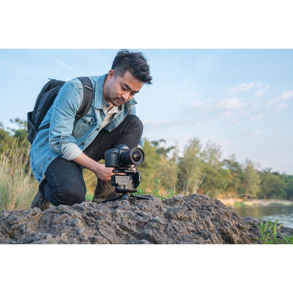 QING features an Arca-Swiss type quick release plate, allowing for efficient camera mounting.