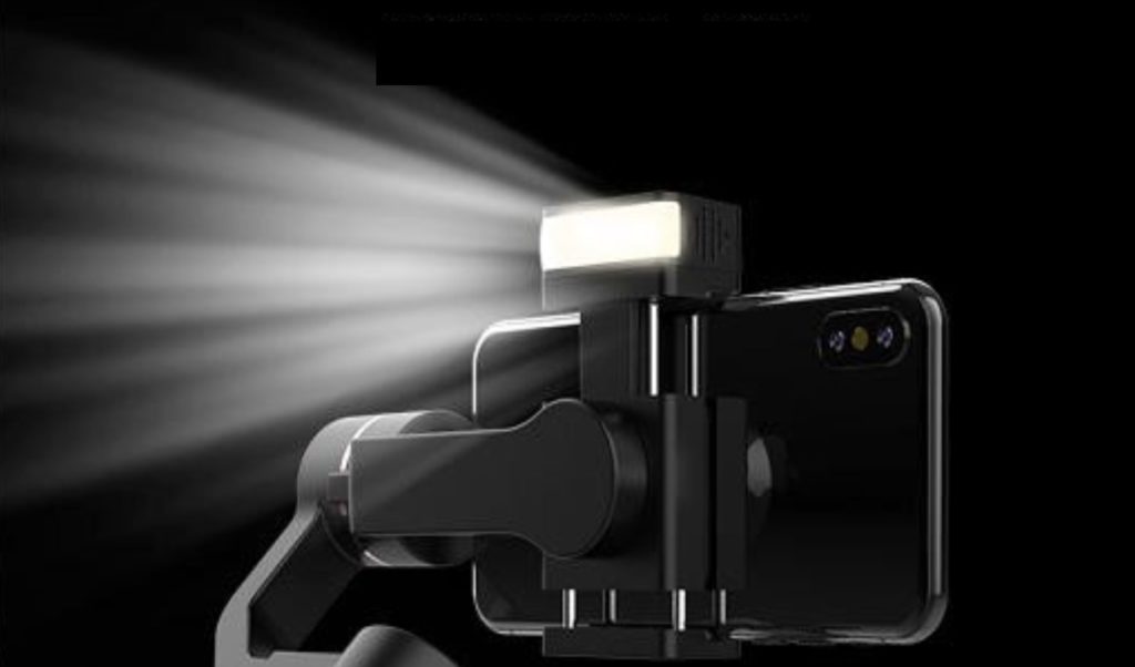 On the top of the gimbal you find a 180 °Rotatable fill light with touch button that adds an extra light to your videos. The light can be set in three different strengths.