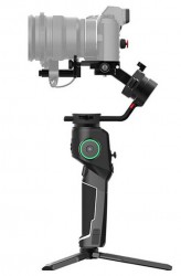 The AirCross 2 is designed to hold the camera mounted closer to the tilt motor, allowing for more stability with most cameras. The camera orientation can be switched between portrait and landscape modes when using the dedicated included bracket. The gimbal also has an angled motor arm in order to allow a clear view of the camera LCD during operation.