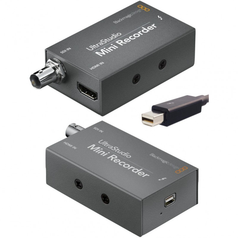 The Blackmagic Design UltraStudio Mini Recorder allows you to capture an SDI or HDMI camera signal and transfer it to your computer for editing and other applications. The Mini Recorder features SDI and HDMI inputs and a Thunderbolt output, and supports resolutions up to 1080p30 / 1080i60. The Mini Recorder also comes with Blackmagic Media Express software, which will let you accept and encode incoming footage as best fits your workflow.