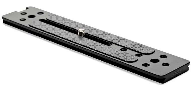 Arca-Swiss compatible, extended quick-release plate for DSLRs and other accessories.