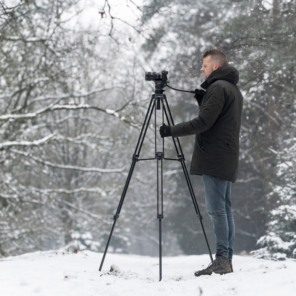 The tripod legs are dual-level extendable and are quick to set up thanks to the flip-lock locking system. The centre spreader provides extra stability. At the bottom of the legs are rubber feet that adjust to the ground so the tripod is stable even on uneven terrain. The tripod has a maximum working height of 180cm, which is pleasant to work with.