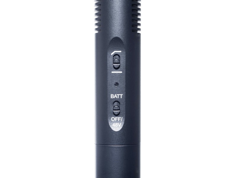A recessed switch area has been added to the body of the microphone for comfort and feel. The features here include a switchable low-cut filter to help reduce low frequency noise, a power switch for either battery or phantom power operation and an LED battery indicator. The SGM-250 can work off standard 48V phantom power or a single AA battery with virtually no loss in performance.