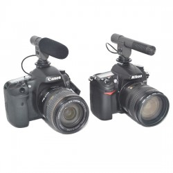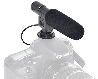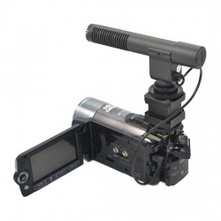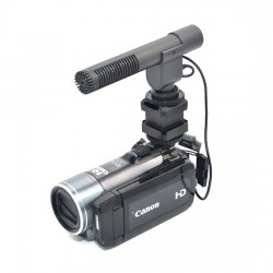 The JJC MIC-1 stereo electret microphone is a compact microphone for video cameras and SLR cameras with movie capability. Via the hotshoe attach the microphone to your camera via the power cable, make sure that the microphone records sound.