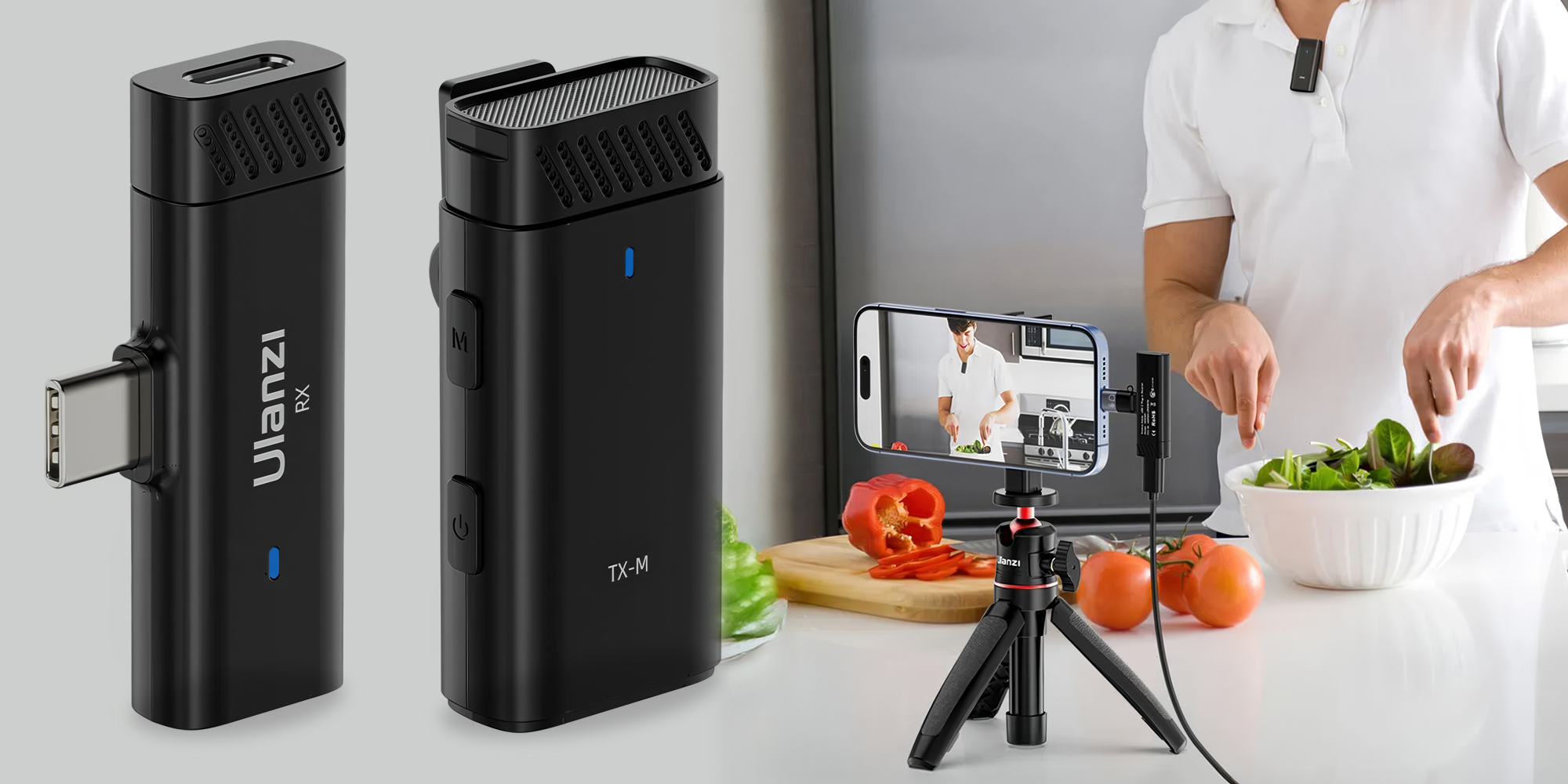 Each transmitter weighs only 12 g, so you can attach it to your collar, jacket lapel or pocket and forget you’re wearing it. The set also includes a practical case, so your microphones and accessories are always ready to go. If you often change recording locations or want to be discreet during live appearances, you will certainly appreciate the mobility of the Ulanzi HM2301 wireless audio transmission set.